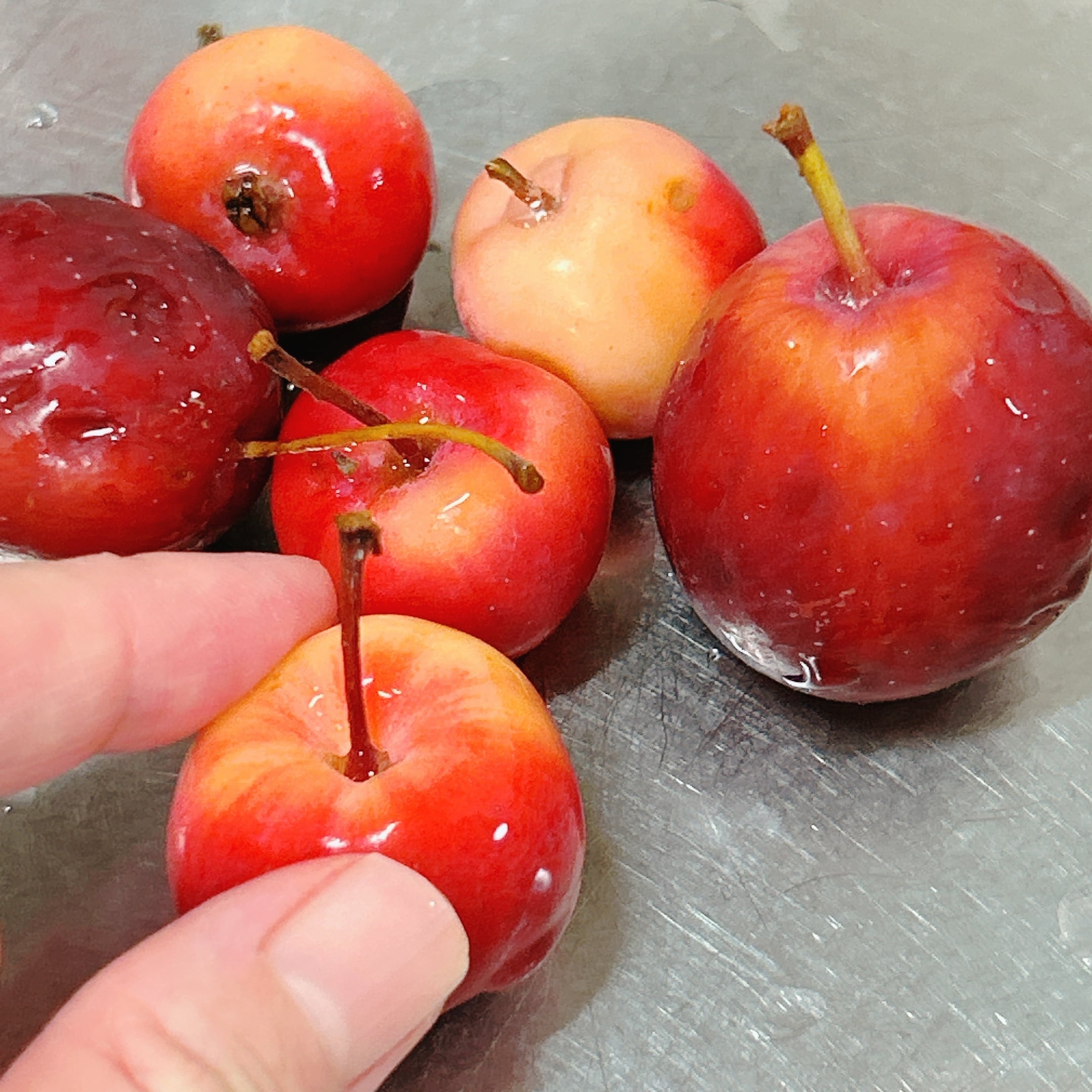 この後大きい実も来ましたが、入っていたりんごの小さいこと小さいこと!