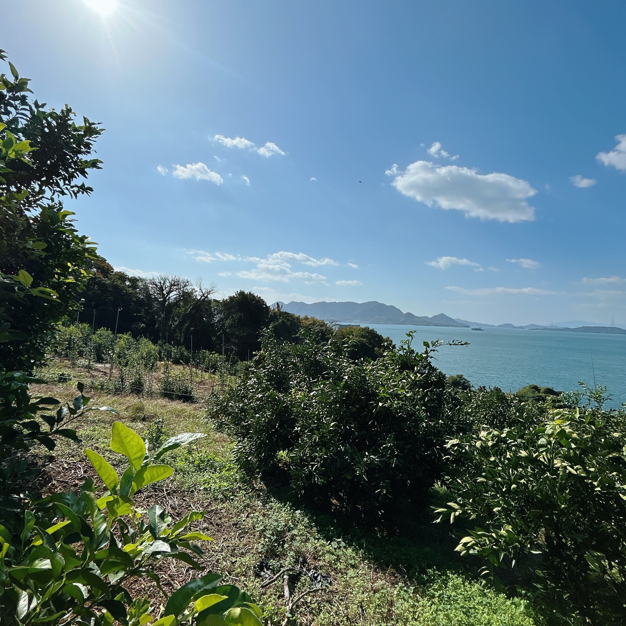 見てください!海を見下ろす島の鈴なりのベルガモットです